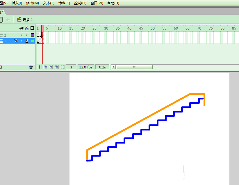 5、添加關鍵幀,進行逐幀臺階繪制;
