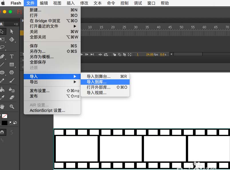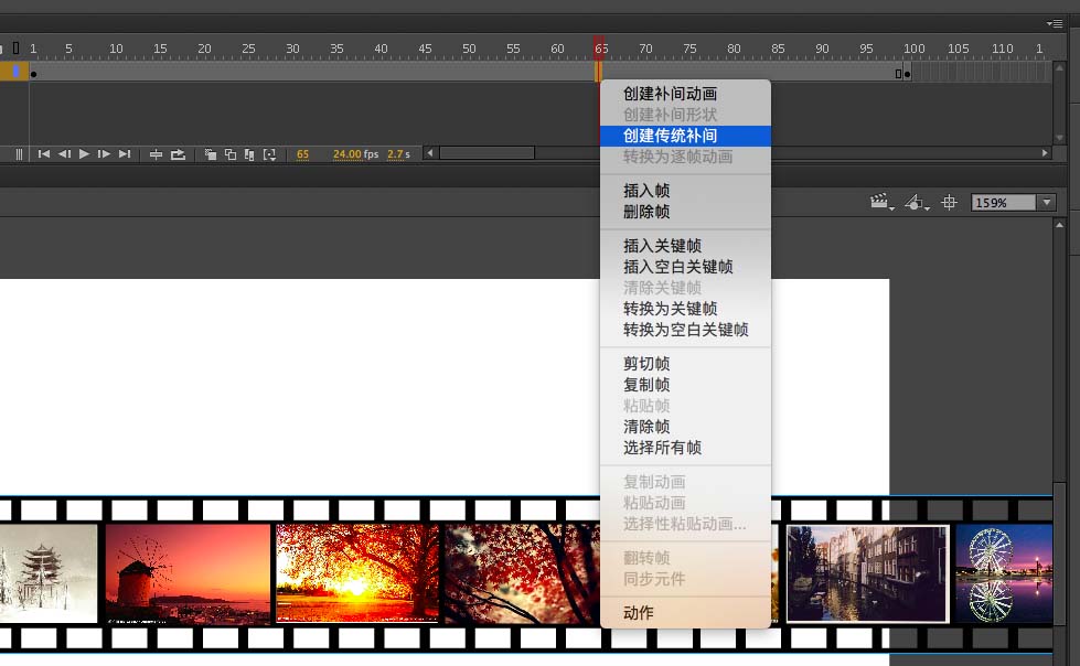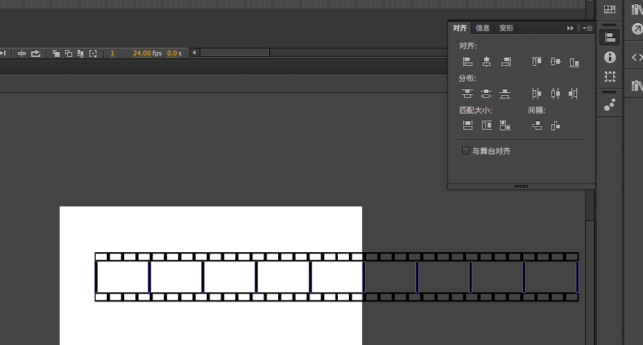 11、然后將其轉(zhuǎn)化為元件,剩下的就是動(dòng)作的部分,不用多說大家也知道,膠片在滾動(dòng),所以在第60幀處插入關(guān)鍵幀,將尾部與右邊緣對齊,創(chuàng)建傳統(tǒng)補(bǔ)間