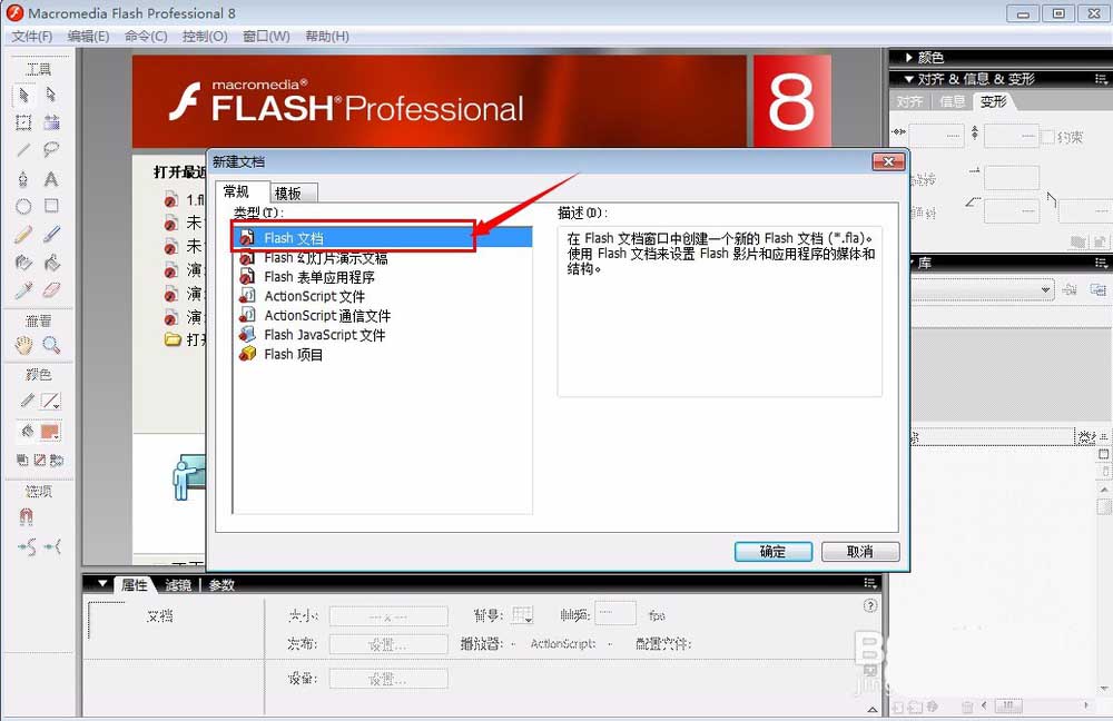 1、打開flash程序,界面如圖所示,我這里用的是flash8,其它版本界面會有所不同。