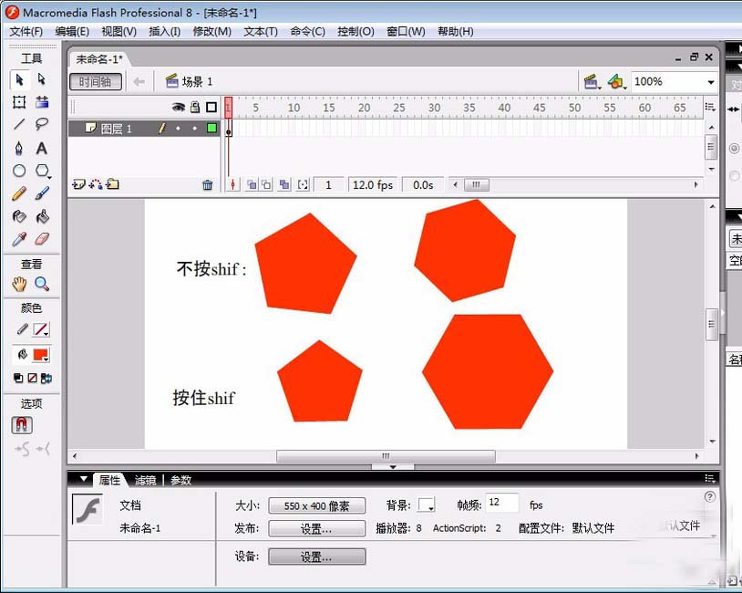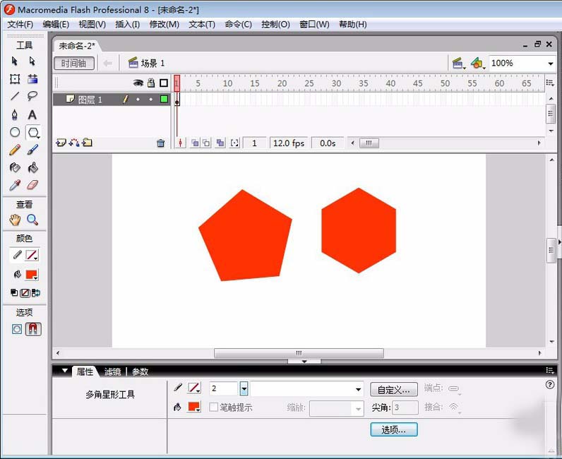 在flash中其實可以繪制出好多圖形,而且畫出的圖為矢量圖。今天給大家介紹的是如何繪制五邊形和六邊形。