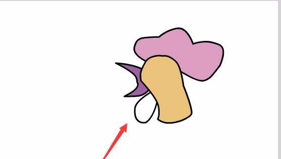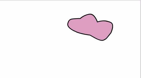 3、點擊鋼筆工具,在舞臺上繪制云彩形狀,然后在工具箱內找到油漆桶工具作為雞冠,將其顏色設置為淡紫色,如圖所示: