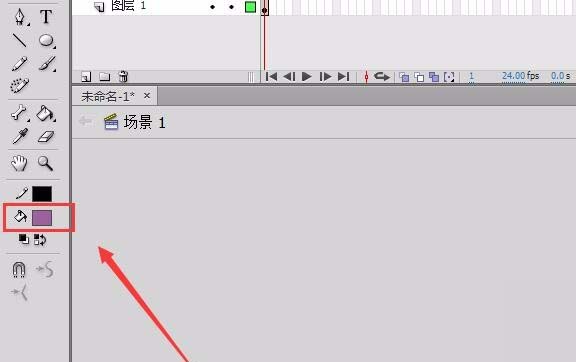 11、在工具箱內找到油漆桶工具,將顏色設置為紫色,如圖所示: