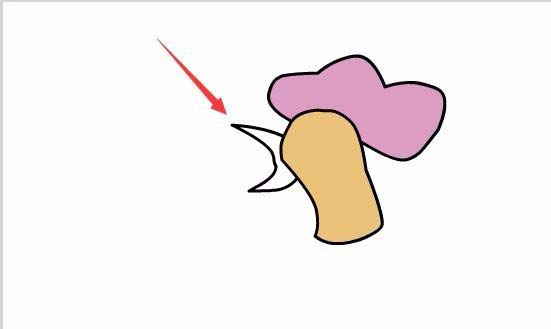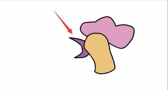 10、選擇鋼筆工具在舞臺上繪制如圖所示的形狀作為雞嘴巴,如圖所示: