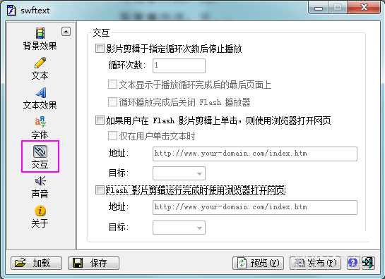 7、點擊【交互】,在右側可以設置播放結束后的狀態,頁面鏈接等