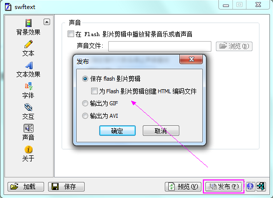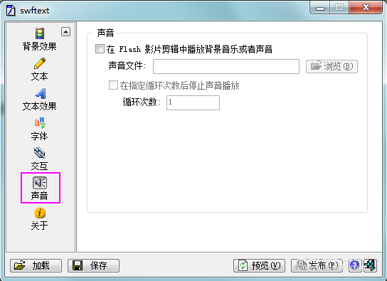 8、點擊【聲音】,可以指定 flash 播放的背景音樂