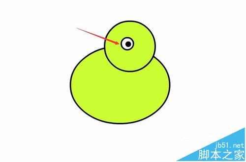 6、按下鍵盤(pán)上的shift鍵,繪制一個(gè)圓形作為小雞的眼睛,如圖所示: