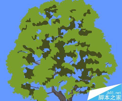 6、新建一層,顏色#464E1F,在樹冠底色上繪出暗部。