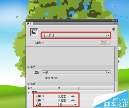 8、下方新建兩層,分別放置草地、藍天。漸變色繪出草地、藍天。白色筆刷繪出白云基形,F8轉為影片剪輯,添加模糊濾鏡。復制,更改透明度,錯開放置。完成繪制。