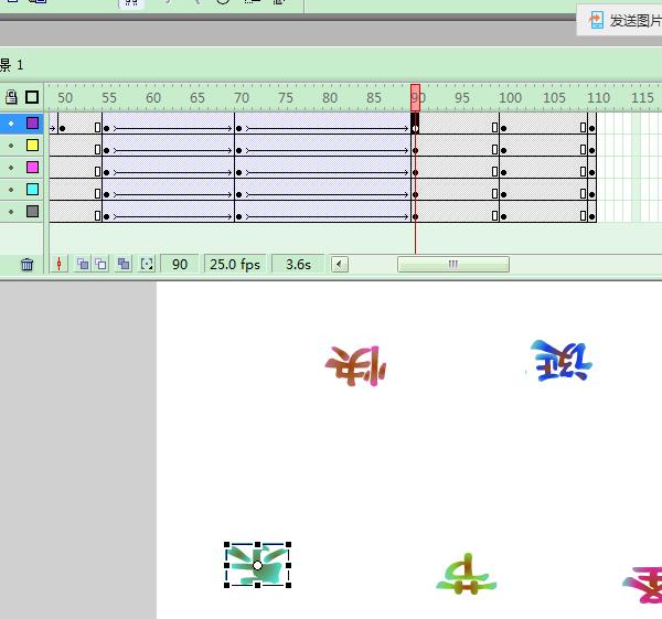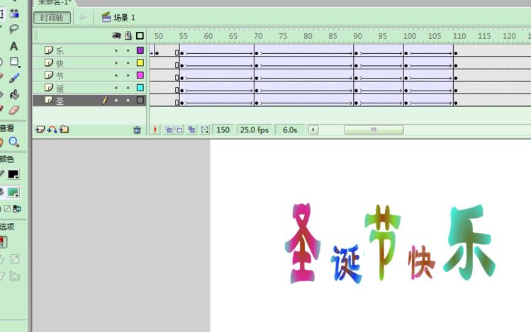 4、把每個字分別轉換為元件,然后分散到圖層中;