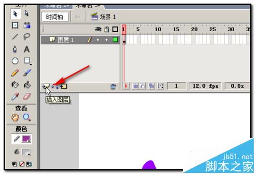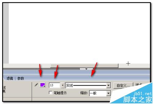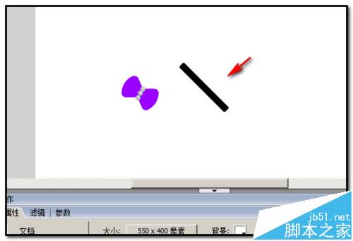1、新建文檔;在舞臺上畫出筆觸高度為13;紫色的直線,如下圖所示;