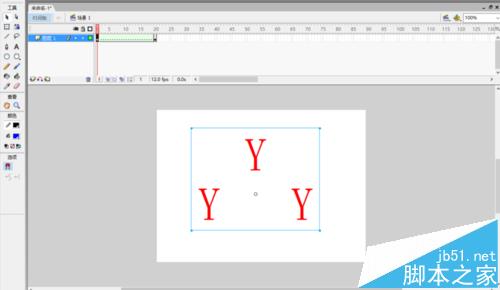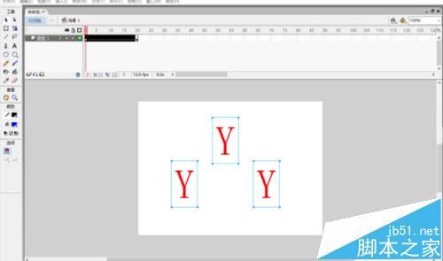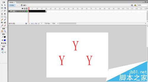 1、開啟Flash軟件,新建一個Flash文檔,用文本工具打三個字母Y,再用任意變形工具將字母放大,按住Shift鍵可以等比例放大。