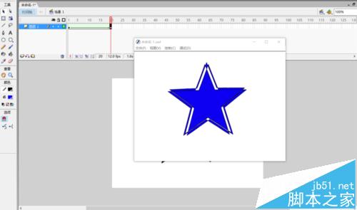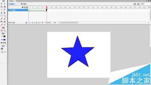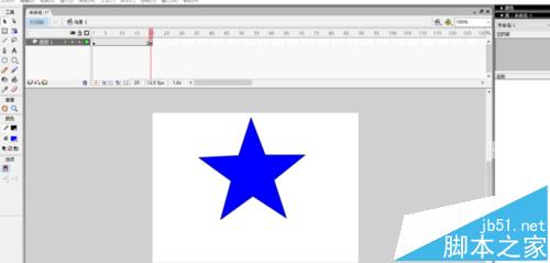 3、填充色選擇藍色,畫出一個五角星,用選擇工具調整五角星的位置,這樣動畫的開始形狀和結束形狀就確定好了。