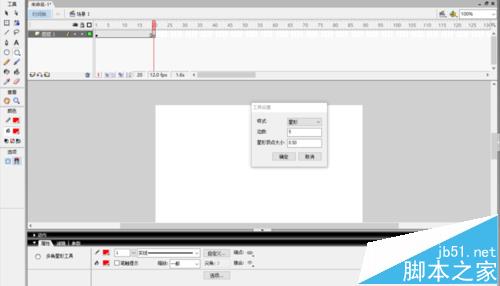 2、選擇在20幀處插入關鍵幀,刪除三個字母Y,鼠標左鍵長按矩形工具,再彈出的選項中選擇多角星形工具,在多角星形工具選項中選擇星星,邊數選擇5,再點擊確定。
