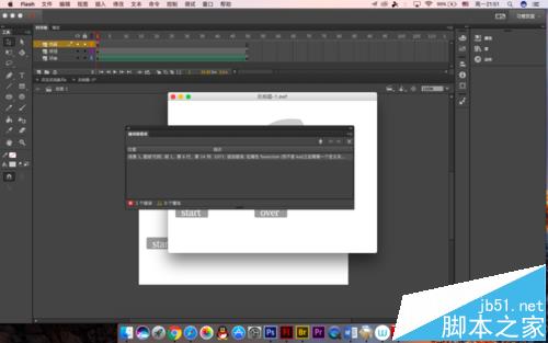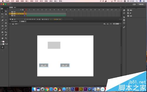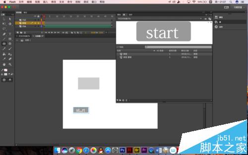 5、下面我們來制作按鈕層,因為之前有發過一個教程是教大家怎么制作按鈕的,座椅這里就套用了,而且flashCC中沒有公用庫了,需要自己制作按鈕,所以建議大家最好做一些備用。選中按鈕圖層的第一幀,將庫面板調出來,把按鈕拖出來
