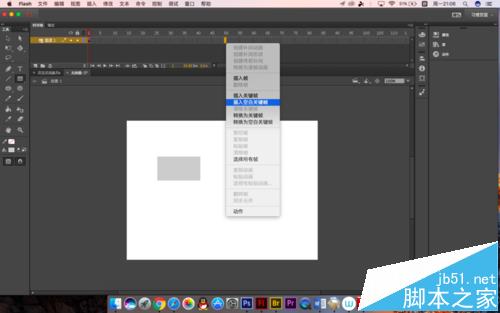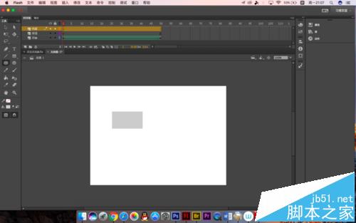 1、首先在第一幀處我們選擇矩形工具畫一個矩形出來,邊框與填充色大家自由選擇