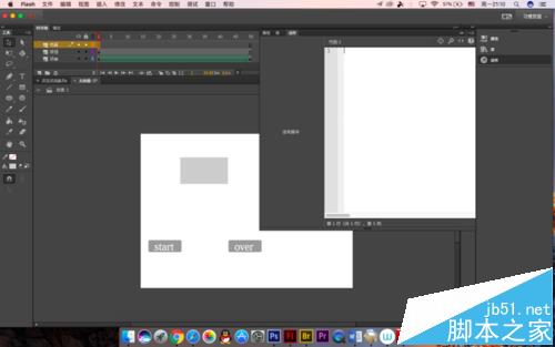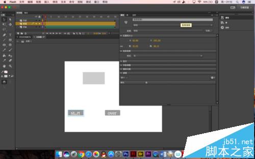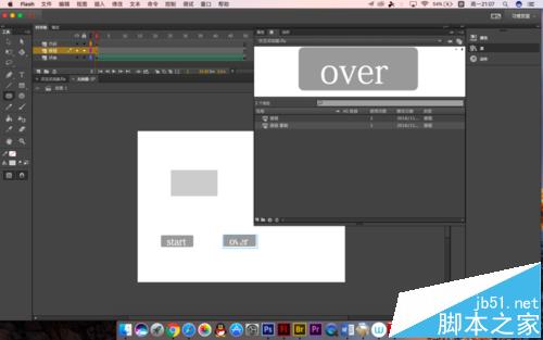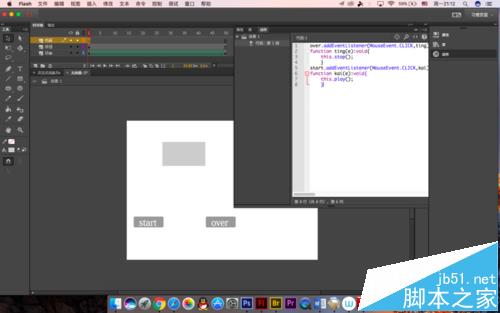 9、另一個也是同樣的操作,改為over,如果大家沒有按鈕或者嫌麻煩的話可以制作一個簡易的按鈕,畫一個圖形就可以了,主要是測試停止和播放