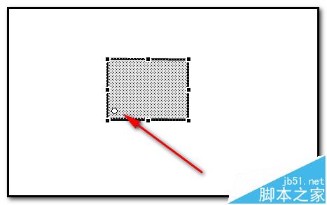 3、放開鼠標,方形即呈選中狀態,方形四周顯8個黑色小方框,這是控制點;中間顯一個空心小圓,這是方形的中心點;然后,光標放在其中一個小黑方框上;光標變成雙箭頭的形狀;