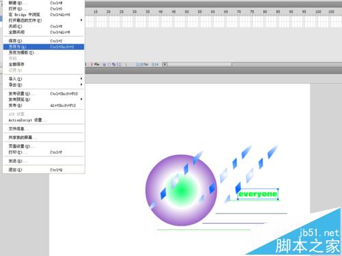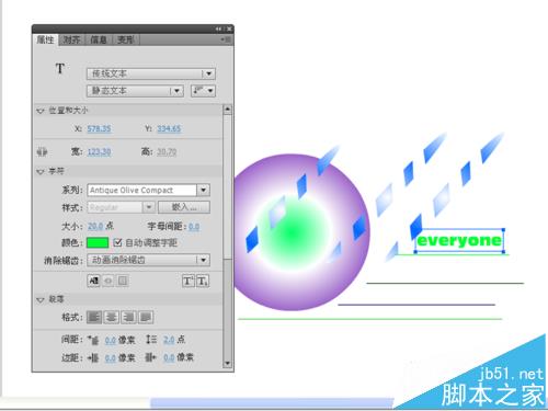 9、選擇工具箱里文本工具,在舞臺上輸入文字內容“everyone”,設置一種自己喜歡的字體,字號為20,顏色也可以根據自己的需要進行設置。