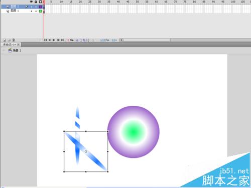 4、在時間軸上點擊新建圖層按鈕,新建圖層2,選擇工具箱里橢圓工具將填充顏色設置為#0066ff,在舞臺上繪制一個橢圓。