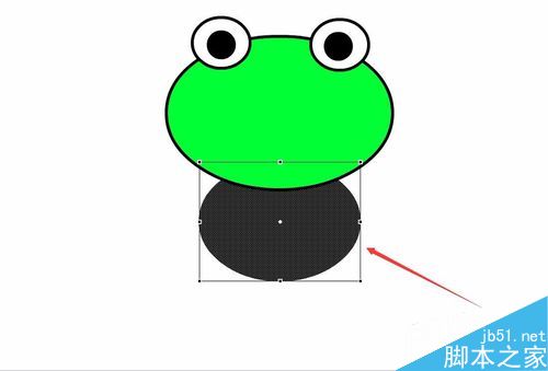 8、再次選擇橢圓工具,在頭部的下面繪制一個(gè)橢圓,作為青蛙的肚子,如圖所示:
