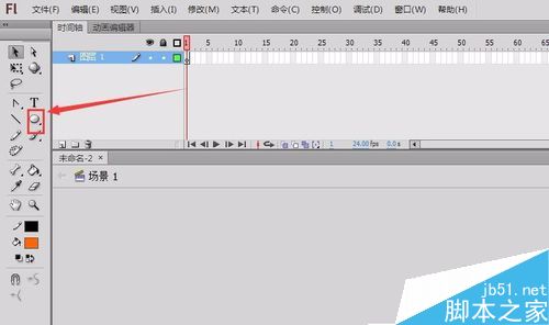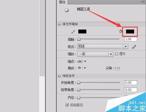 3、點(diǎn)擊橢圓在舞臺(tái)上繪制一個(gè)橢圓作為青蛙的頭部,如圖所示: