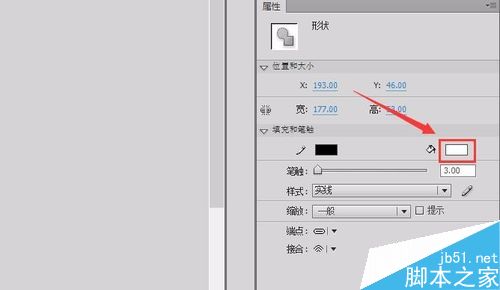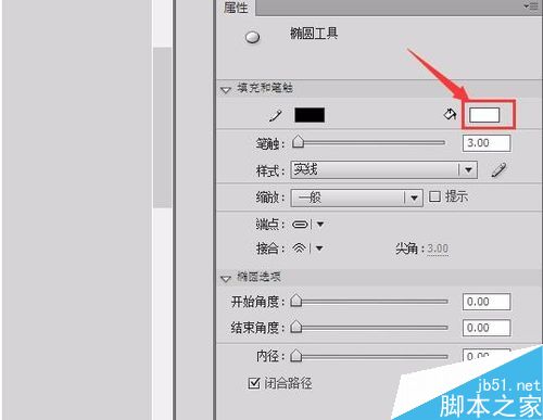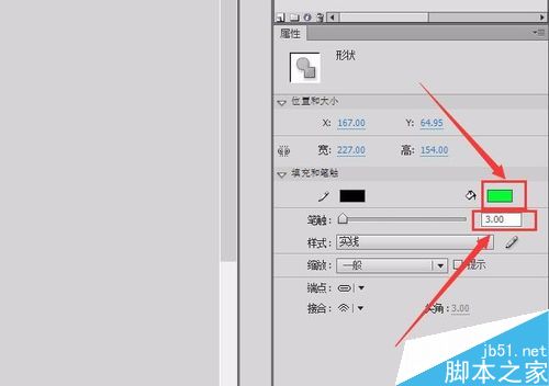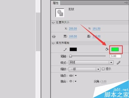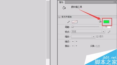 4、選擇這個(gè)橢圓工具在屬性里設(shè)置填充色為草綠色,筆觸大小為3,如圖所示: