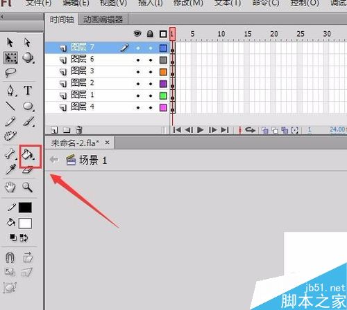 14、在工具箱里找到油漆桶工具,如圖所示:
