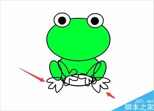 17、選擇這條直線,調(diào)節(jié)其形狀,這樣我們的卡通青蛙就制作完成了,如圖所示: