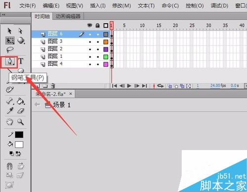 12、在工具箱里找到鋼筆工具,如圖所示: