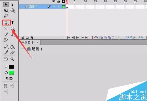 2、在工具箱里找到鋼筆工具,如圖所示:
