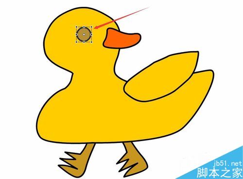 14、選擇這個圓在屬性里調節填充色為黑色,我們的卡通小黃鴨就制作完成了,如圖所示: