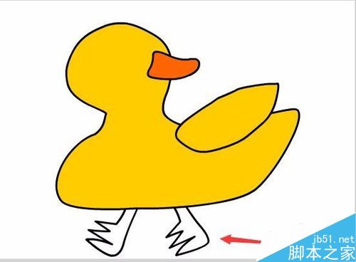 10、再在工具箱里選擇鋼筆工具繪制小鴨子的兩只腳掌,如圖所示: