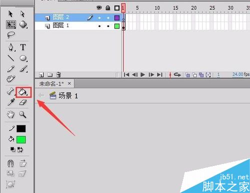 4、在工具箱里找到油漆桶工具,如圖所示: