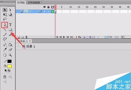 2、在工具箱里找到鋼筆工具,如圖所示: