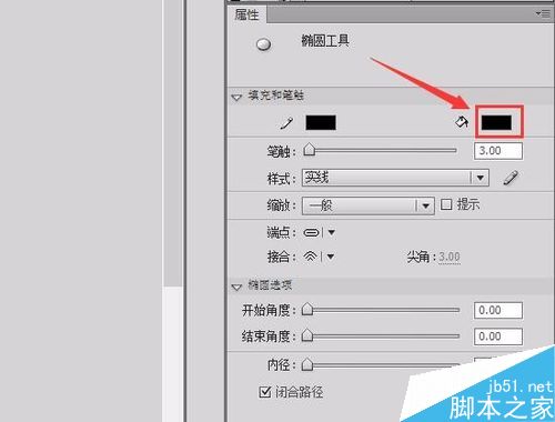 10、選擇橢圓工具,在屬性里修改填充色為黑色,按下鍵盤上的shift鍵給蝴蝶繪制兩只眼睛,如圖所示: