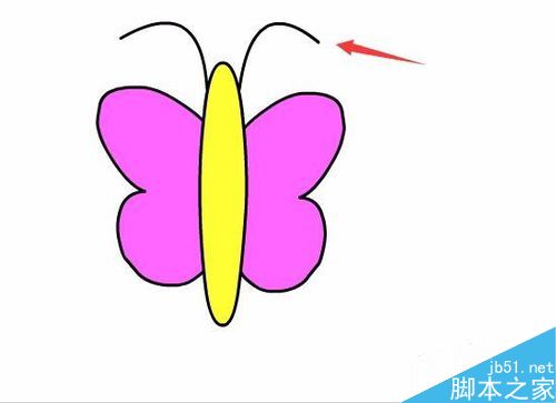 9、在工具箱里選擇鋼筆工具,給蝴蝶繪制兩條胡須,如圖所示:
