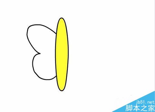 6、在翅膀的旁邊繪制一個橢圓作為蝴蝶的身體,如圖所示: