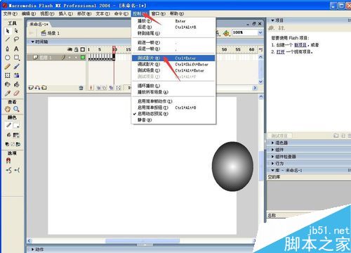 4、插入完成之后,我們測試一下影片,控制—測試影片(ctrl+enter)