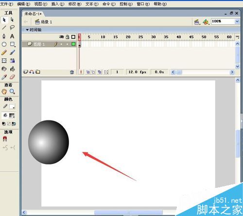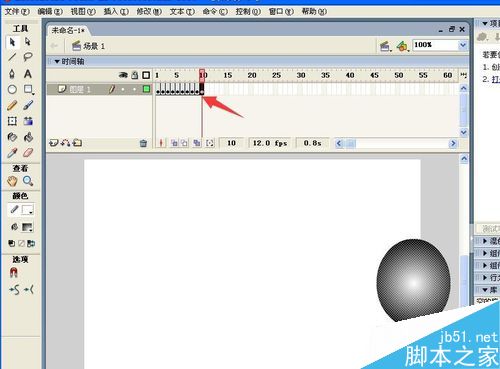 2、在第一幀的地方右擊,插入關鍵幀(或是直接按鍵盤上的F6鍵快捷按鈕),在舞臺上有用橢圓工具繪制小球,如圖所示