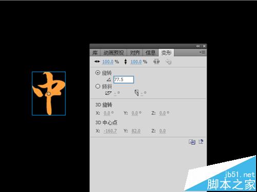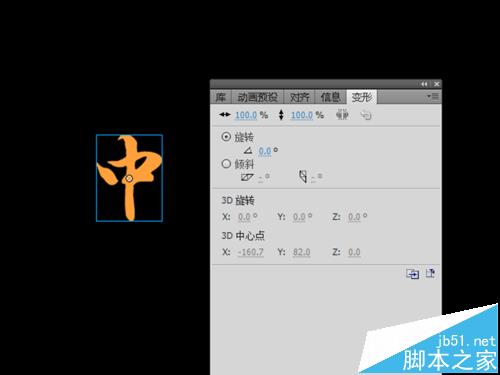 6、按ctrl+f8組合鍵新建一個名稱為元件9的影片剪輯元件,確定后進入編輯區(qū)域,將影片剪輯元件2拖拽到舞臺,打開變形工具窗口。