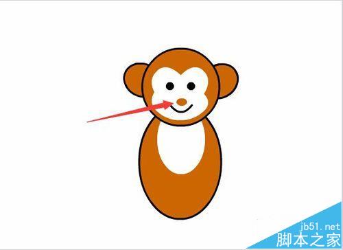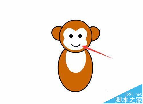 8、在猴子的頭部繪制一個橢圓,并調節其形狀,作為猴子的面部,如圖所示: