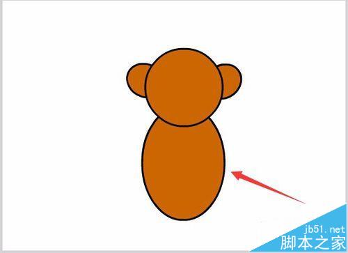 6、再次繪制一個橢圓作為猴子的身體,如圖所示:
