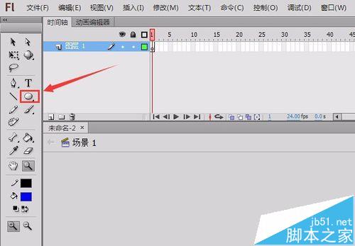 2、在這個界面的左側的工具箱里找到橢圓工具,如圖所示: