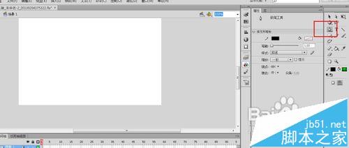 1、打開Adobe Flash新建一個空白文件,選擇鋼筆工具。新建就在開始的歡迎界面就可以直接新建,也可以在文件中新建。鋼筆工具在右側的工具欄中,如果你的工具欄顯示的并不全可以向左側拖動讓其兩行顯示即可。