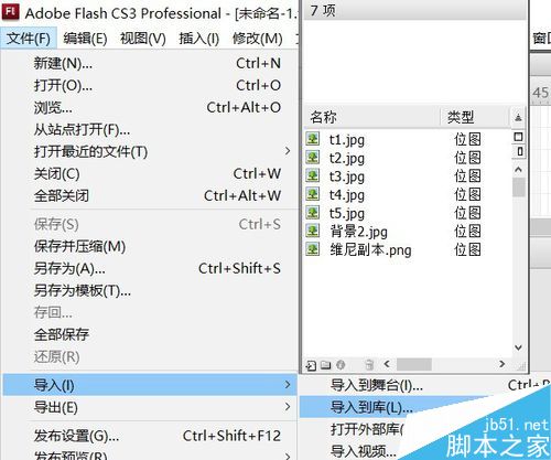 1、事先準備好需要的圖片。背景圖、維尼、相框、相框內的圖片。相框內的圖片最好將大小調整與相框比例相同。調整方法見下面的引用。將文件導入:文件——導入——導入到庫。