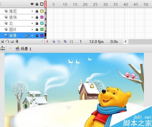 13、回到場景,分層放入第二大步制作的MC、維尼PNG圖片以及閃爍的星等裝飾。完成最后制作。
