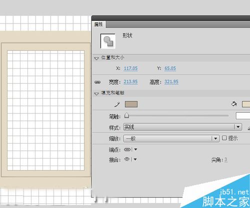 4、新建一層。線條色#B6A896,筆觸大小2.25,填充色不變。用同樣方法畫出一扇窗,左邊線條色改為較淡的#E7E1DC,做出窗戶的明暗。