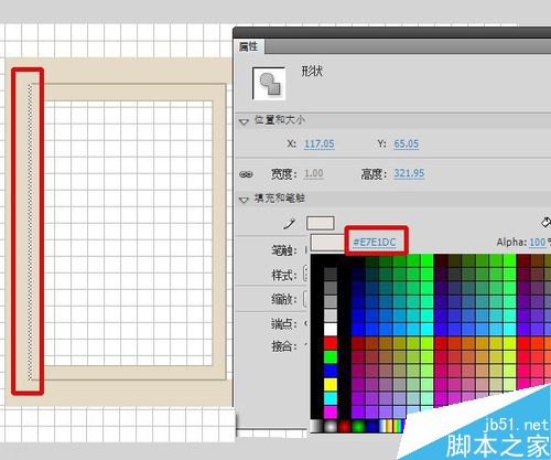 5、拉出一個細(xì)長的矩形作為窗格,同樣用改變線條色做出明暗。