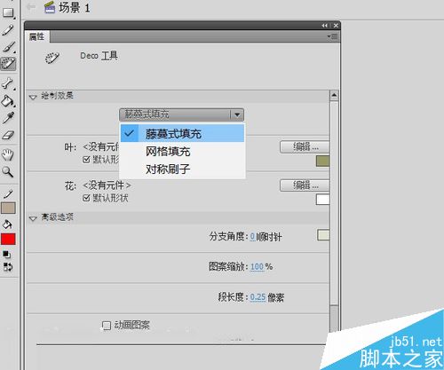 14、新建一層作為墻體,填充顏色為#F7F7EC。點開Deco工具,選擇藤蔓式填充,枝、葉的顏色分別改為各人喜愛的顏色,這里選擇了與墻體相近的色系。