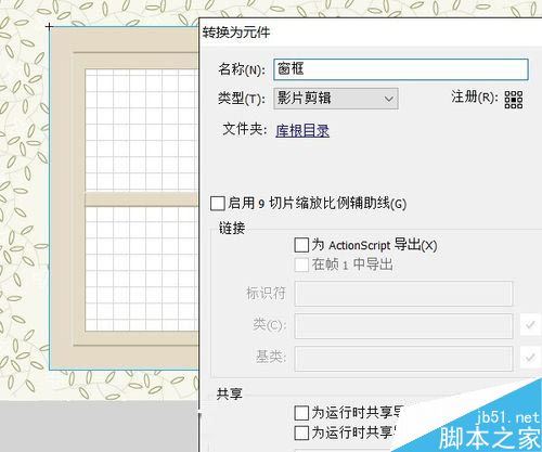 16、選擇窗框,F(xiàn)8轉(zhuǎn)換為影片剪輯元件。